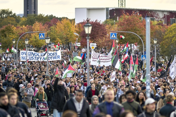 Thousands of people joined a pro-Palestinian and anti-Israeli demonstration in Berlin's government district, with around 14,000 calling for freedom and justice for Palestine, according to the police on Saturday, reported dpa.
