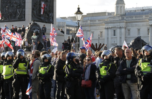 Metropolitan Police said Wednesday that they estimated up to 5,000 people were in attendance. They also announced Tuesday that more than 1,600 officers would be deployed for the large demonstration and warned the event must conclude by 7 p.m. local time.